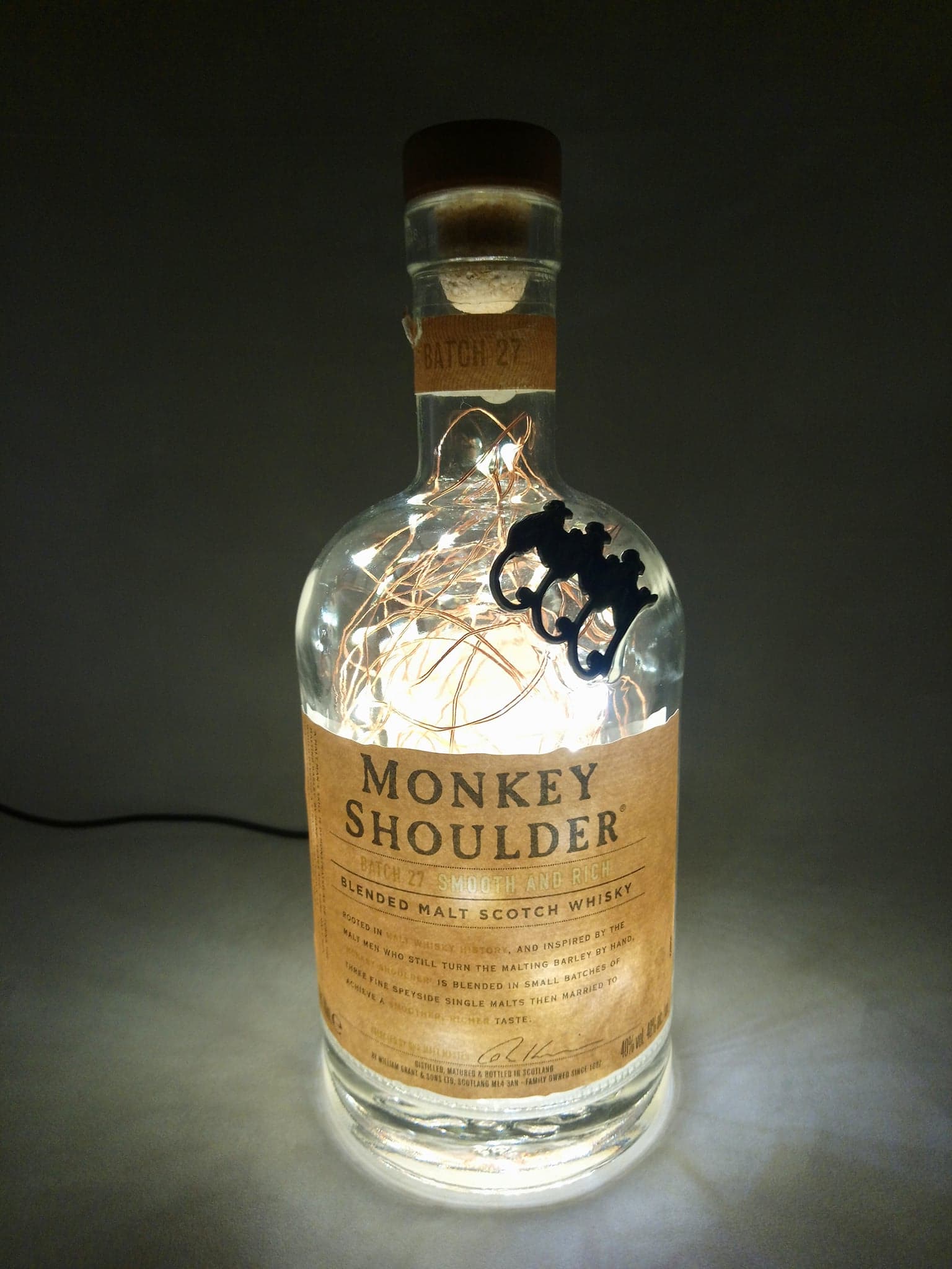 Following this I gifted more bottles, tailoring the choice of bottle to the recipient. If they liked gin, then it was a gin bottle, if they loved a malt, ditto. You see what I mean. The choice of brand and colour was mine; I could use one on offer or supply my own bottle. This is what I did for my own special lamp.