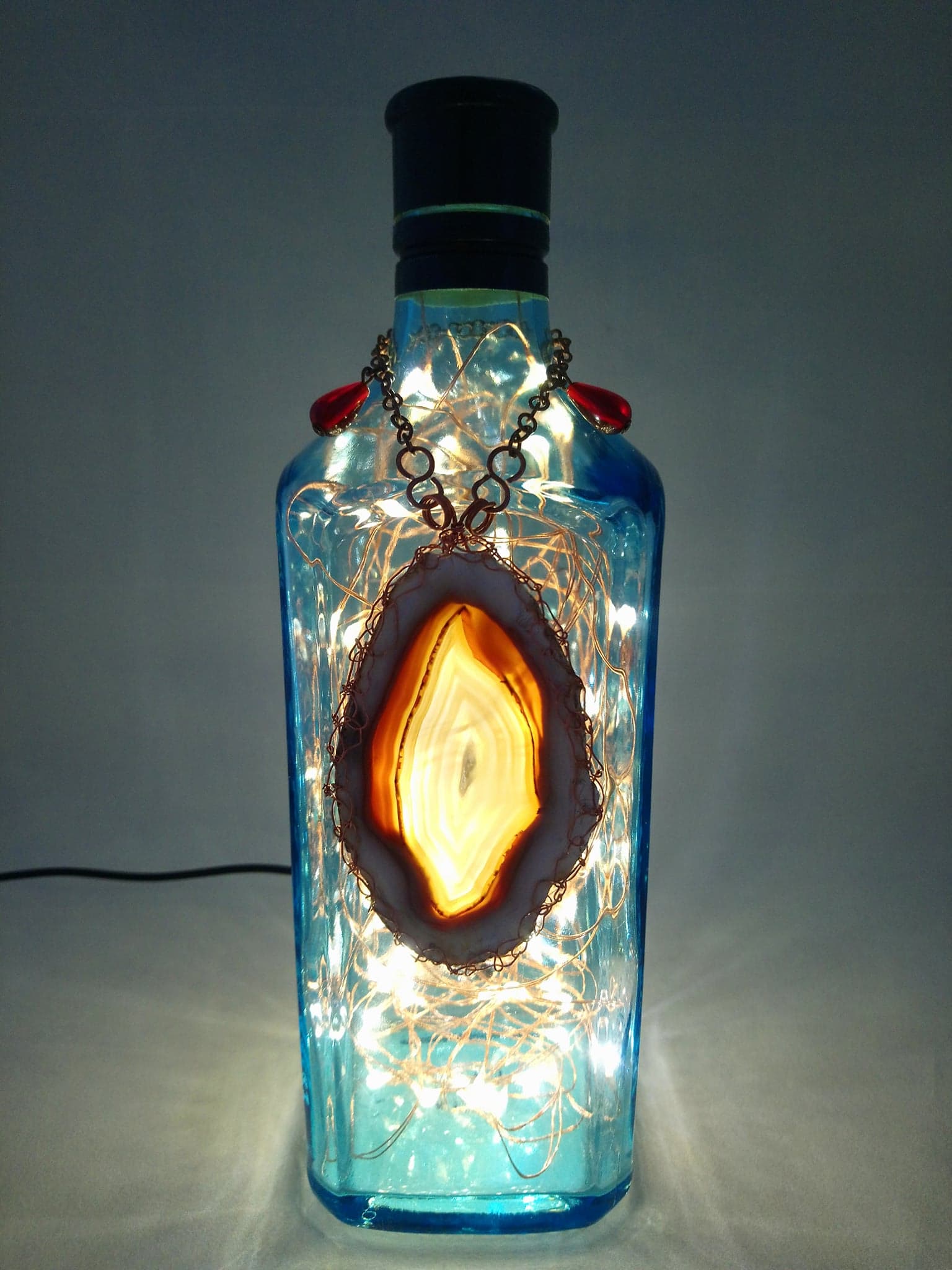 I would like to introduce you to my beautiful up-cycled bottle lamps, a unique and unusual gift idea, an eye-catching vision of splendour, made to garnish and feature in any home.